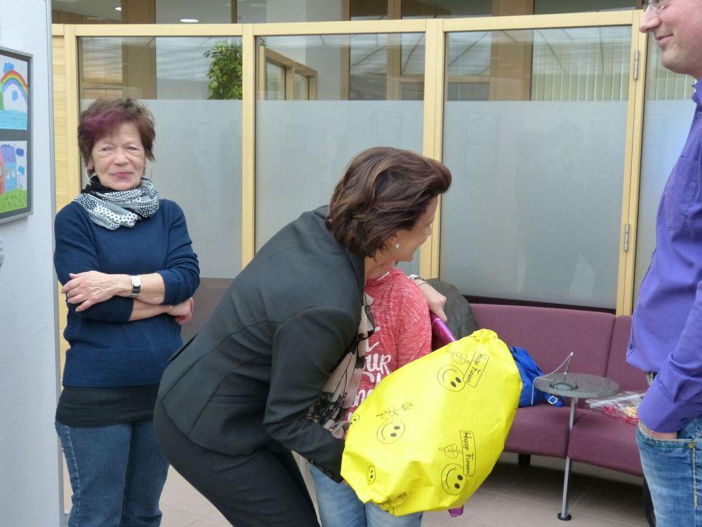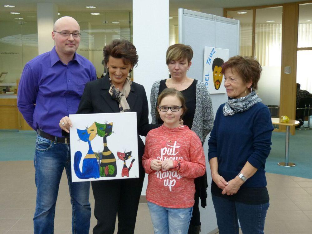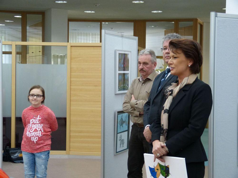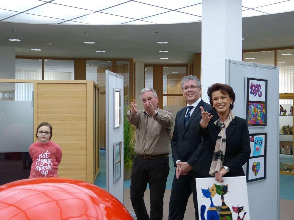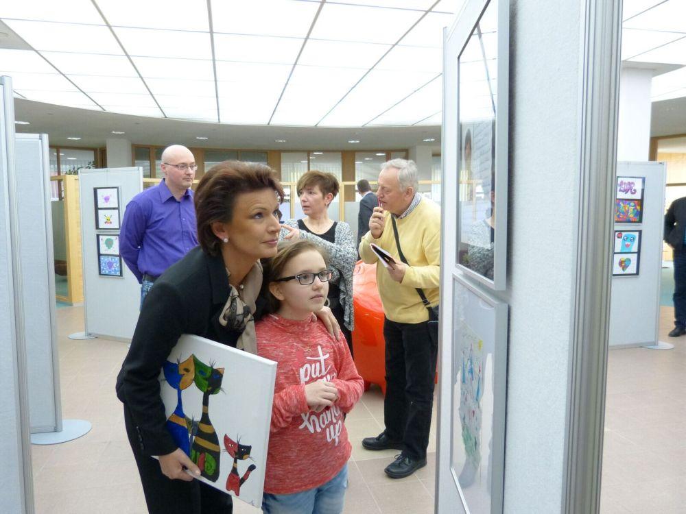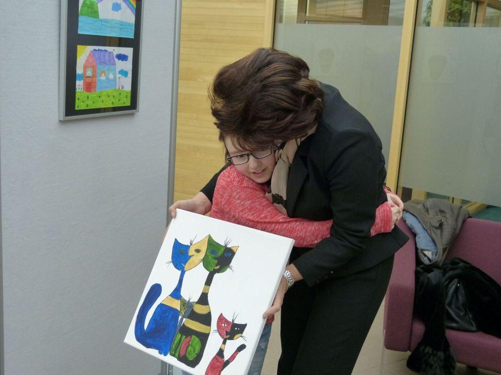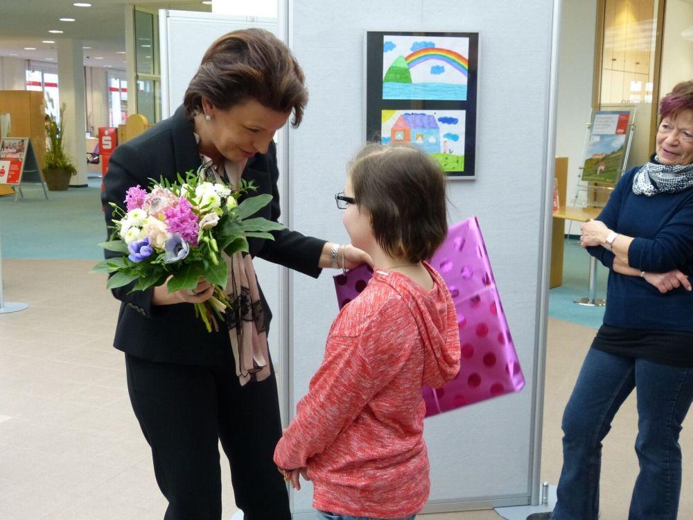 Margit Tönnies, Schirmherrin der Aktion Kinderträume besuchte die Ausstellung und war begeistert. Als kleines Geschenk brachte sie ihr einen Radio CD Player mit, worüber sich Antonia sehr gefreut hat.