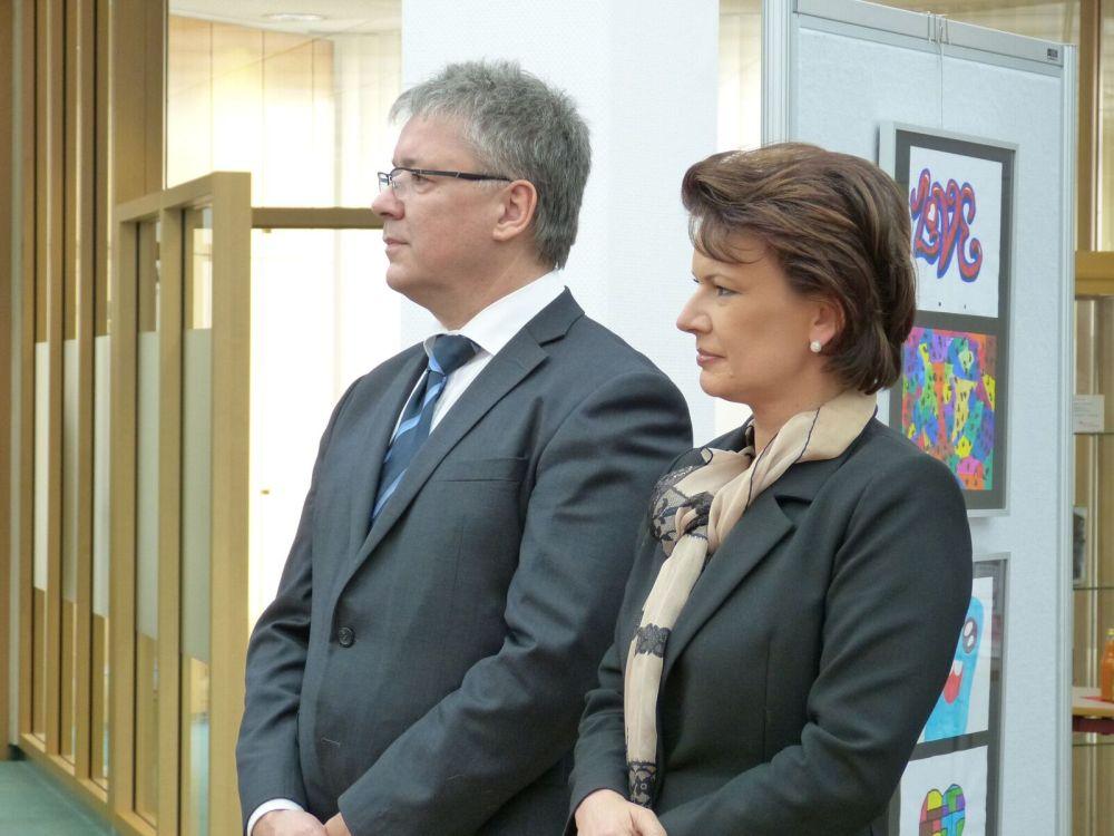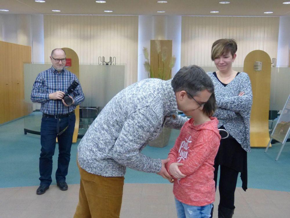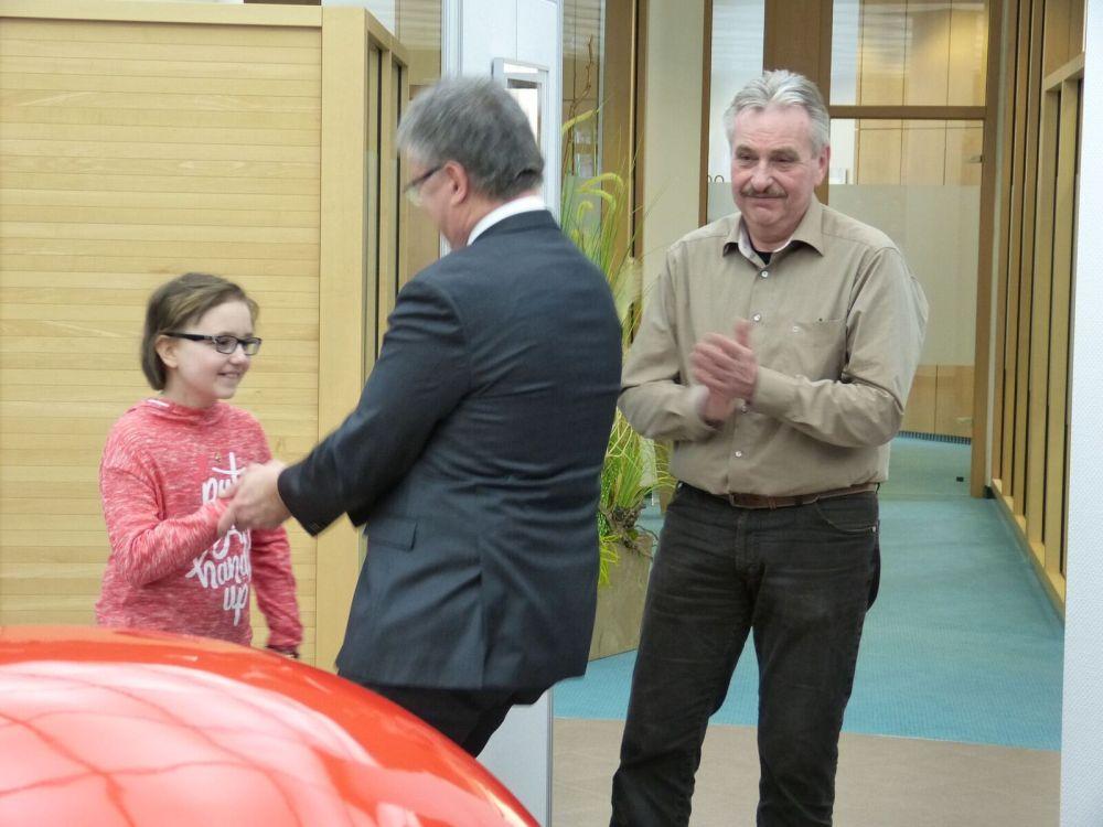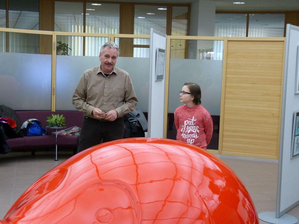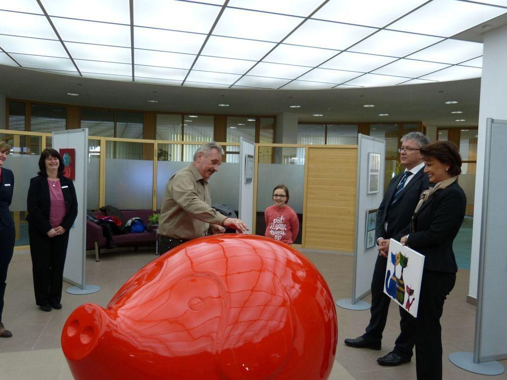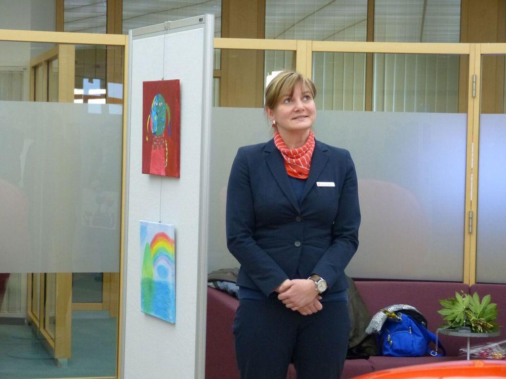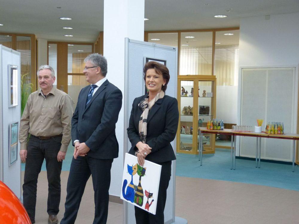 Margit Tönnies, Schirmherrin der Aktion Kinderträume besuchte die Ausstellung und war begeistert. Als kleines Geschenk brachte sie ihr einen Radio CD Player mit, worüber sich Antonia sehr gefreut hat.