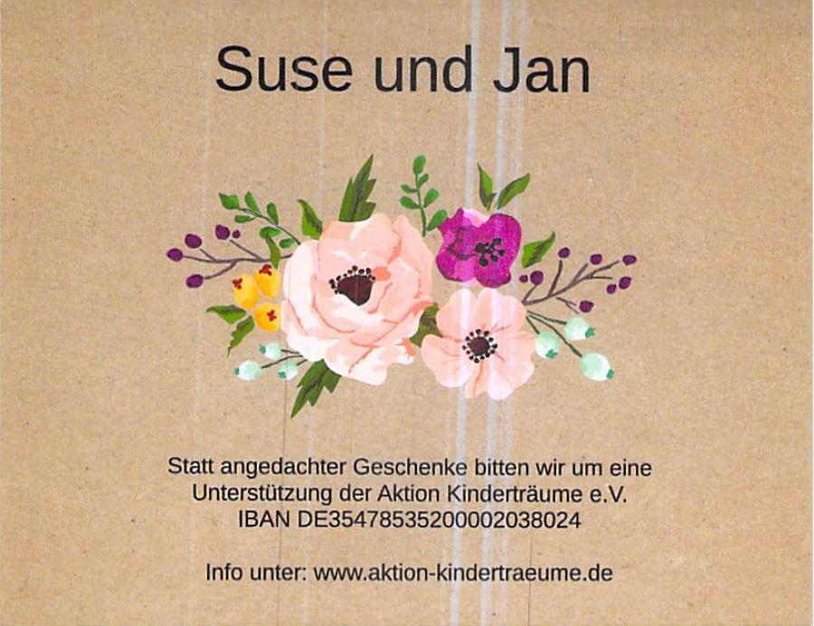 Aktion Kinderträume bedankt sich für diese tolle Idee bei dem Ehepaar Schepers sowie ihren Gästen, die so fleißig gespendet haben, ganz herzlich.