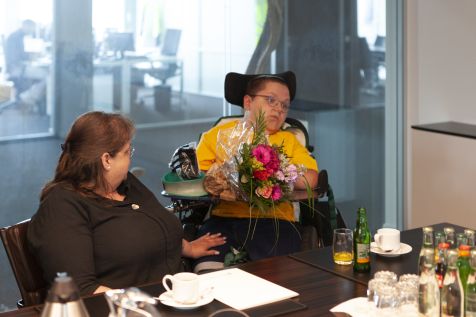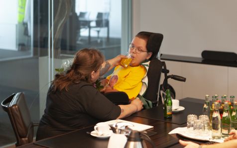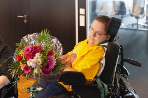 Tim ist 14 Jahre alt und leidet an Spinaler Muskelatrophie. Er sitzt im Rollstuhl und wird zudem nachts beatmet, da ihm ansonsten eine Ateminsuffizienz drohen kann. Tim kann weder Arme noch Beine bewegen und leidet an ausgeprägten Bewegungsstörungen sowie Kontrakturen der Hände und Füße. Tim lebt gemeinsam mit seinem Bruder, bei dem erst vor kurzem ADS festgestellt wurde, bei seinen Eltern und besucht eine Förderschule. Er kann Texte lesen, mit seiner Tastatur schreiben und versucht gerade mehr über die Spracherkennung zu kommunizieren. Da Tim nur mit Unterstützung sitzen kann, wird sein E-Rollstuhl, den er per Joystick bedient, gegebenenfalls mit einer angepassten Schrägliegeschale ausgestattet, da ihm im Liegen das Atmen deutlich leichter fällt.