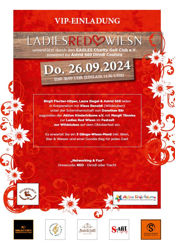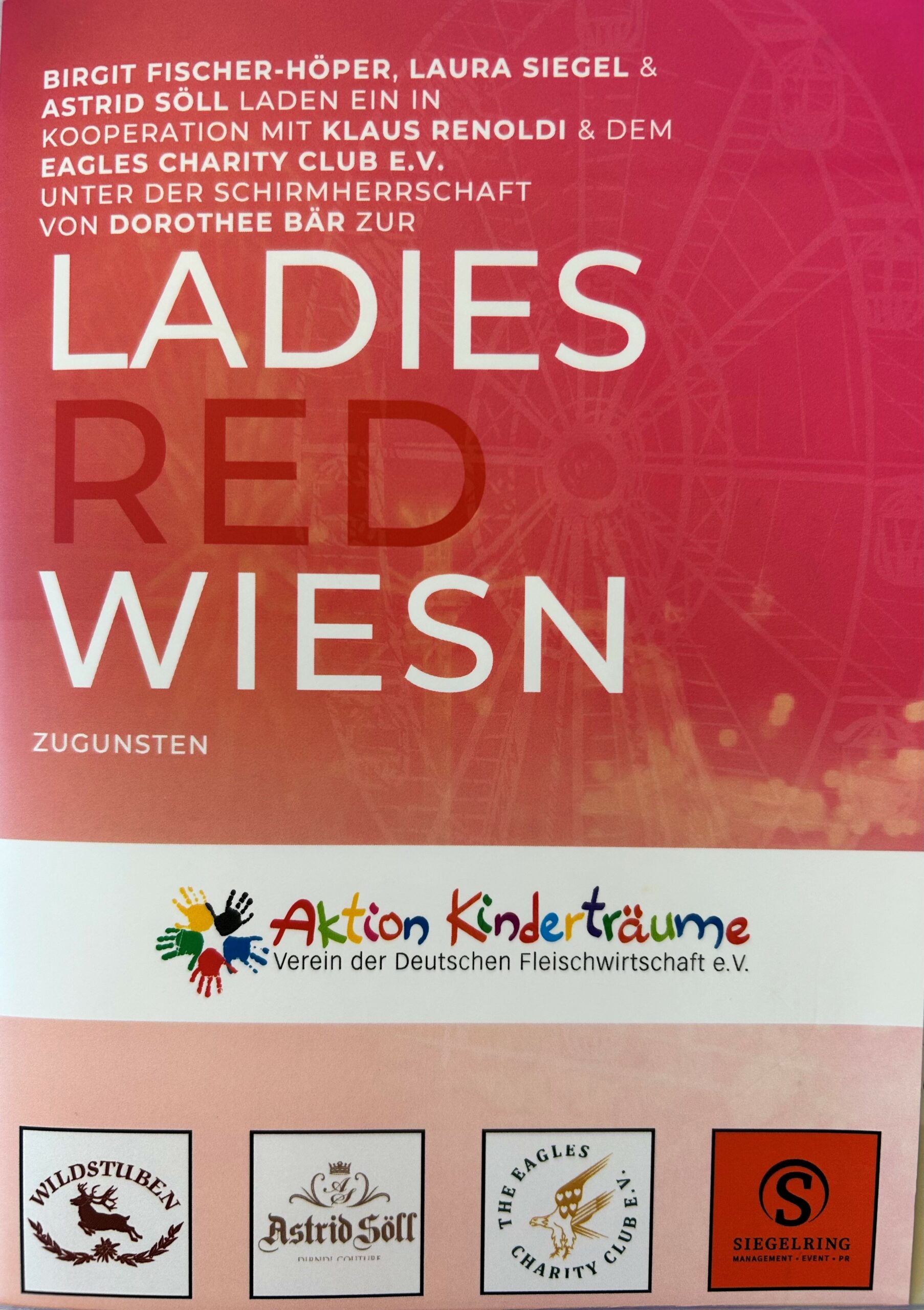 Birgit Fischer-Höper und Laura Siegel luden unter dem Motto “Networking & Wiesn-Gaudi mit Herz“ in Kooperation mit den Festwirten Swantje & Klaus Renoldi sowie Astrid Söll ins Festzelt „Wildstuben ein. Die Schirmherrschaft übernahm Dorothee Bär (MdB).