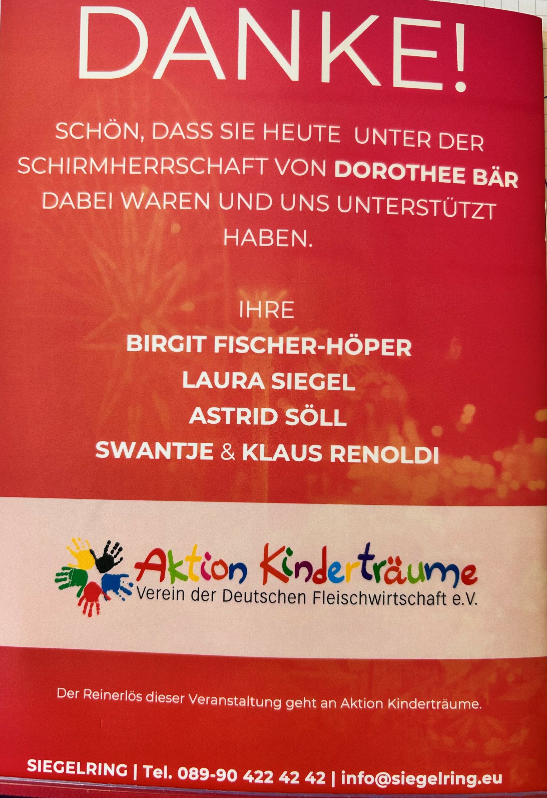 Ein herzliches Dankeschön an alle Gäste und die Veranstalter, die so großzügig gespendet haben. Mit dem eingegangenen Betrag kann auch in Zukunft einer Vielzahl von Kindern und ihren Familien geholfen werden.