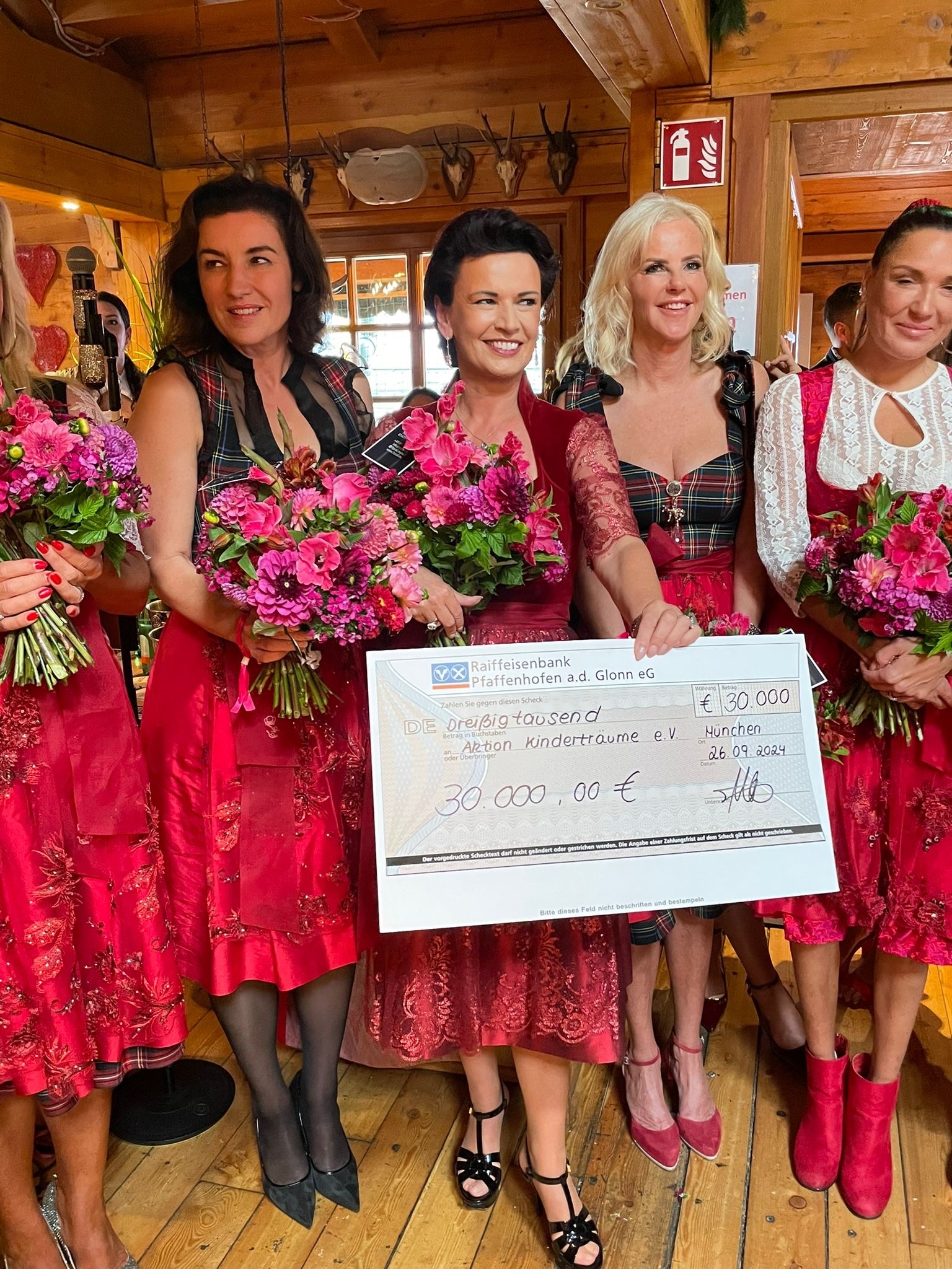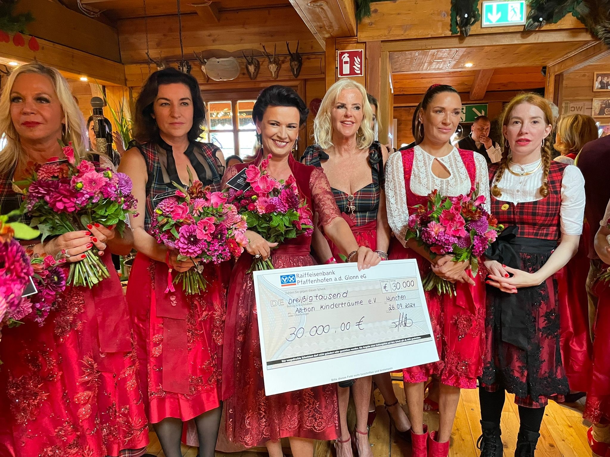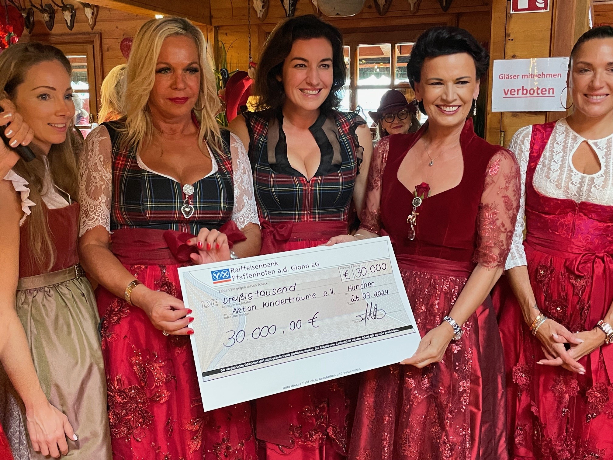 Die 6. Ladies Red Wiesn auf dem diesjährigen Oktoberfest wurde – passend zum 20-jährigen Jubiläum des Vereins – der Aktion Kinderträume e.V. gewidmet. Am Ende der Veranstaltung verkündete Moderatorin Sylvia Walker die stolze Summe von 30.000 Euro und überreichte der Schirmherrin Margit Tönnies den Spendenscheck.
