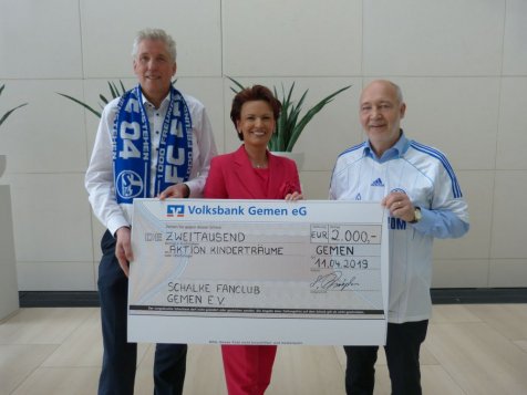 Der Schalke Fan Club Gemen hat beschlossen den großzügigen Betrag von EUR 2.000,00 an Aktion Kinderträume zu spenden. Die Verantwortlichen Herr Günther Kurbjühn und Herr Andreas Fortmann haben den Scheck im Namen des Fan Clubs an die Schirmherrin der Aktion Kinderträume Frau Margit Tönnies übergeben.