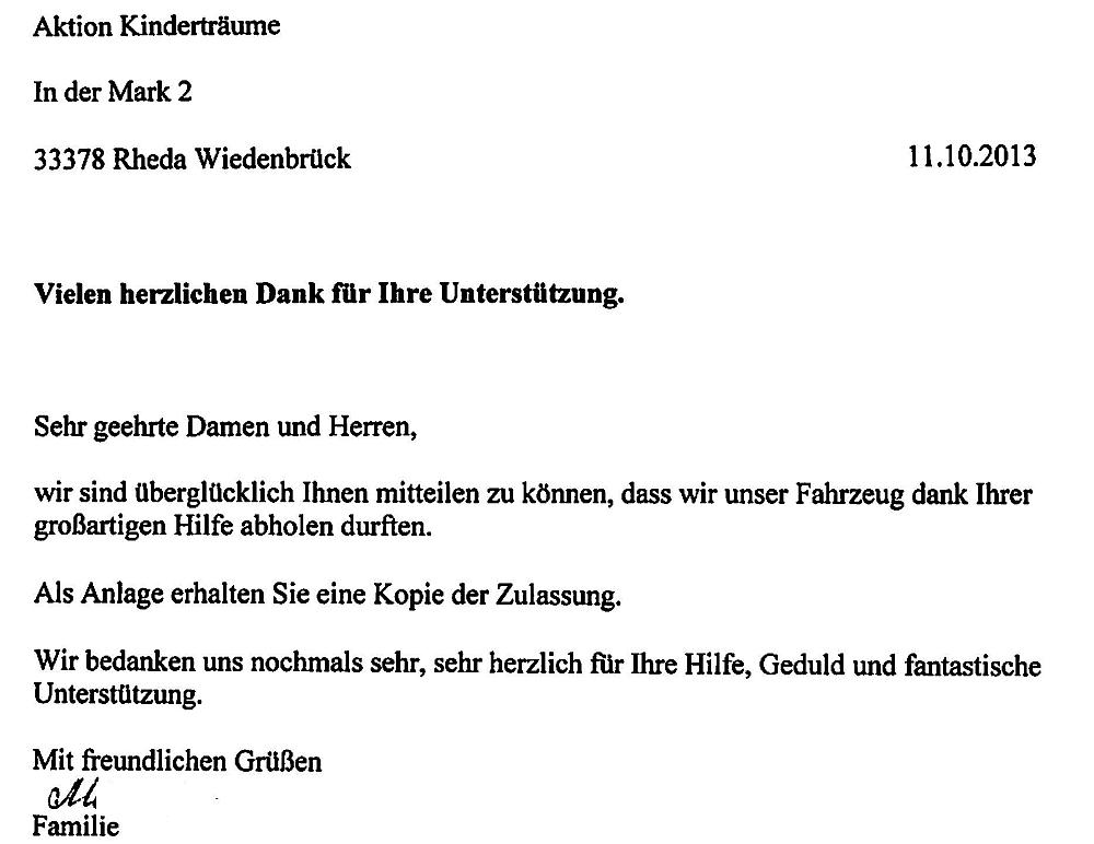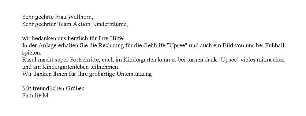Aktion Kinderträume beteiligt sich mit EUR 1.500,00.