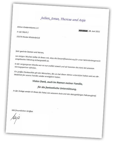 Aktion Kinderträume hat sich an der Finanzierung eines entsprechenden Autos mit einer Spende von EUR 2.000,00 beteiligt.
